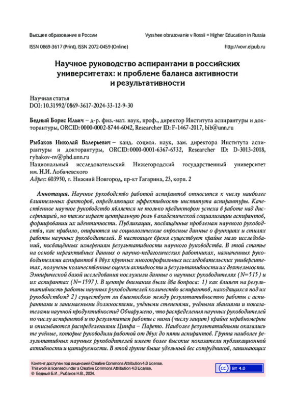 30. Мельник А.Д., Судакова А.Е. Качество публикационного профиля научных руководителей как критерий эффективности подготовки аспиранта // Управление наукой и наукометрия. 2023. Т. 18. № 4. С. 759-790. DOI: 10.33873/2686-6706.2023.18-4.759-790 EDN: FTNEYH