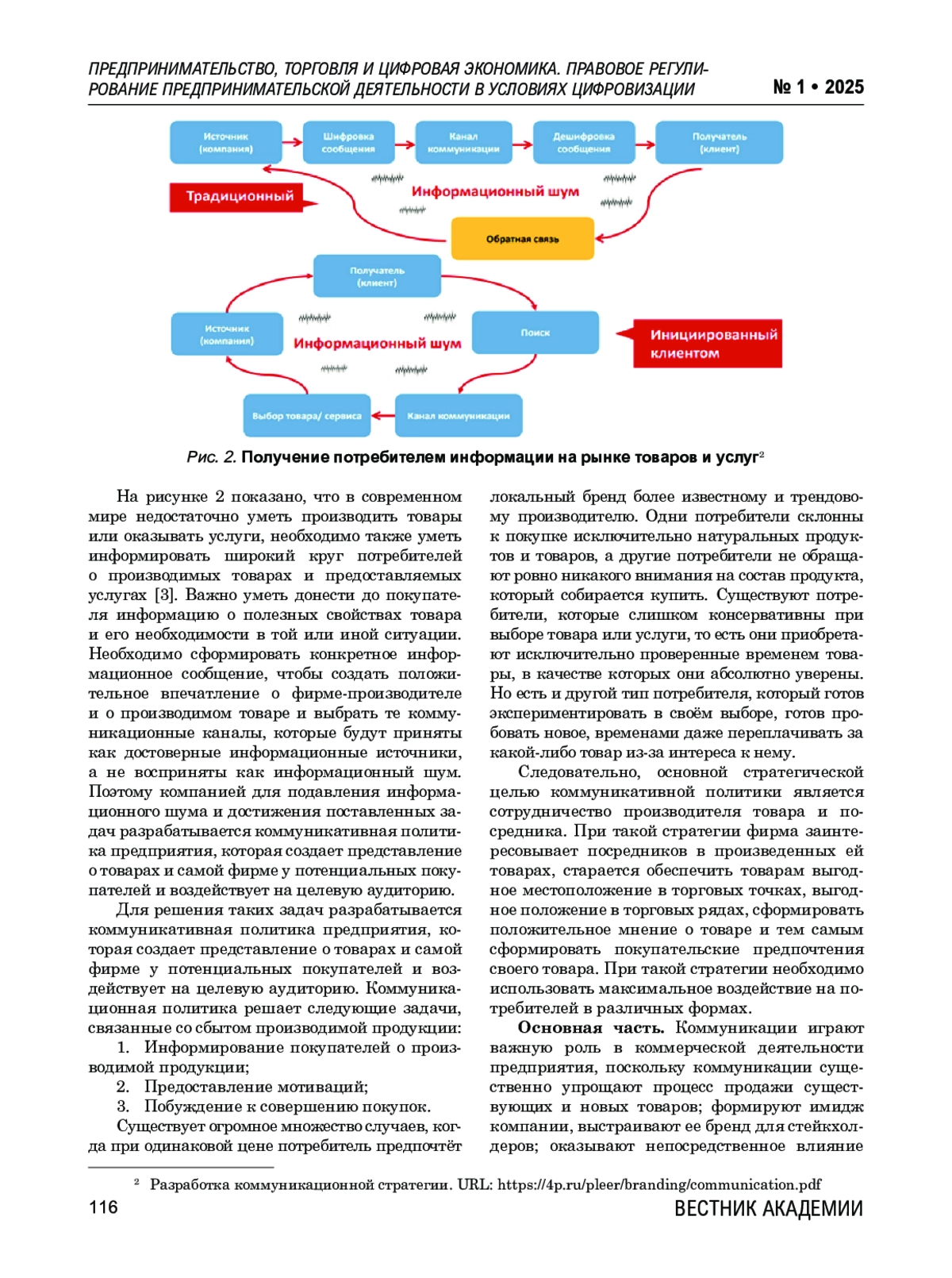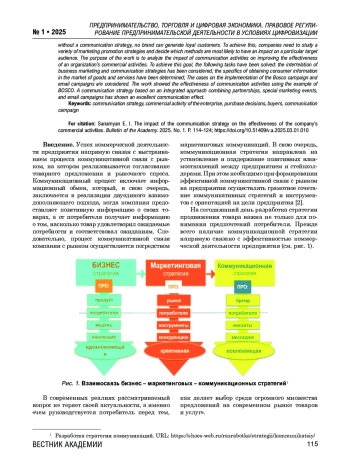 Успех коммерческой деятельности предприятия напрямую связан с выстраиванием процесса коммуникативной связи с рынком, на котором реализовывается согласование товарного предложения и рыночного спроса. Коммуникационный процесс включает информационный обмен, который, в свою очередь, заключается в реализации двуединого взаимодополняющего подхода, когда компания предоставляет позитивную информацию о своих товарах, а от потребителя получает информацию о том, насколько товар удовлетворил ожидаемые потребности и соответствовал ожиданиям. Следовательно, процесс коммуникативной связи компании с рынком осуществляется посредством маркетинговых коммуникаций. В свою очередь, коммуникационная стратегия направлена на установление и поддержание позитивных взаимоотношений между предприятием и стейкхолдерами. При этом необходимо при формировании эффективной коммуникативной связи с рынком на предприятии осуществлять грамотное сочетание коммуникативных стратегий и инструментов с ориентацией на цели предприятия [2].