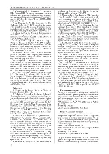 8. Zhang X., Peng K., Zhang X. The function of the NMDA receptor in hypoxic-ischemic encephalopathy. Front Neurosci. 2020; 14: 567665. DOI: 10.3389/fnins.2020.567665
