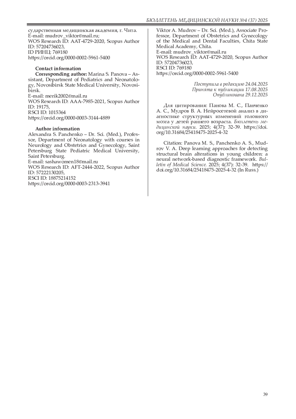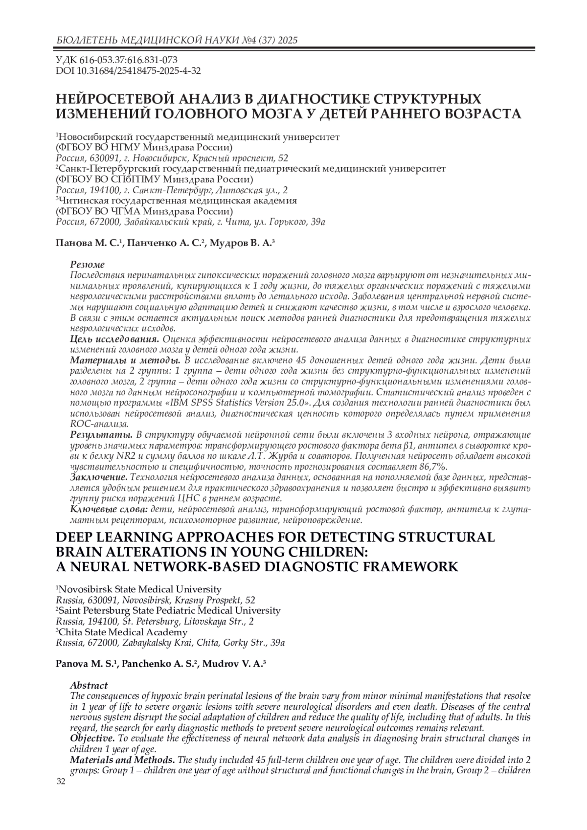 Цель исследования. Оценка эффективности нейросетевого анализа данных в диагностике структурных изменений головного мозга у детей одного года жизни.