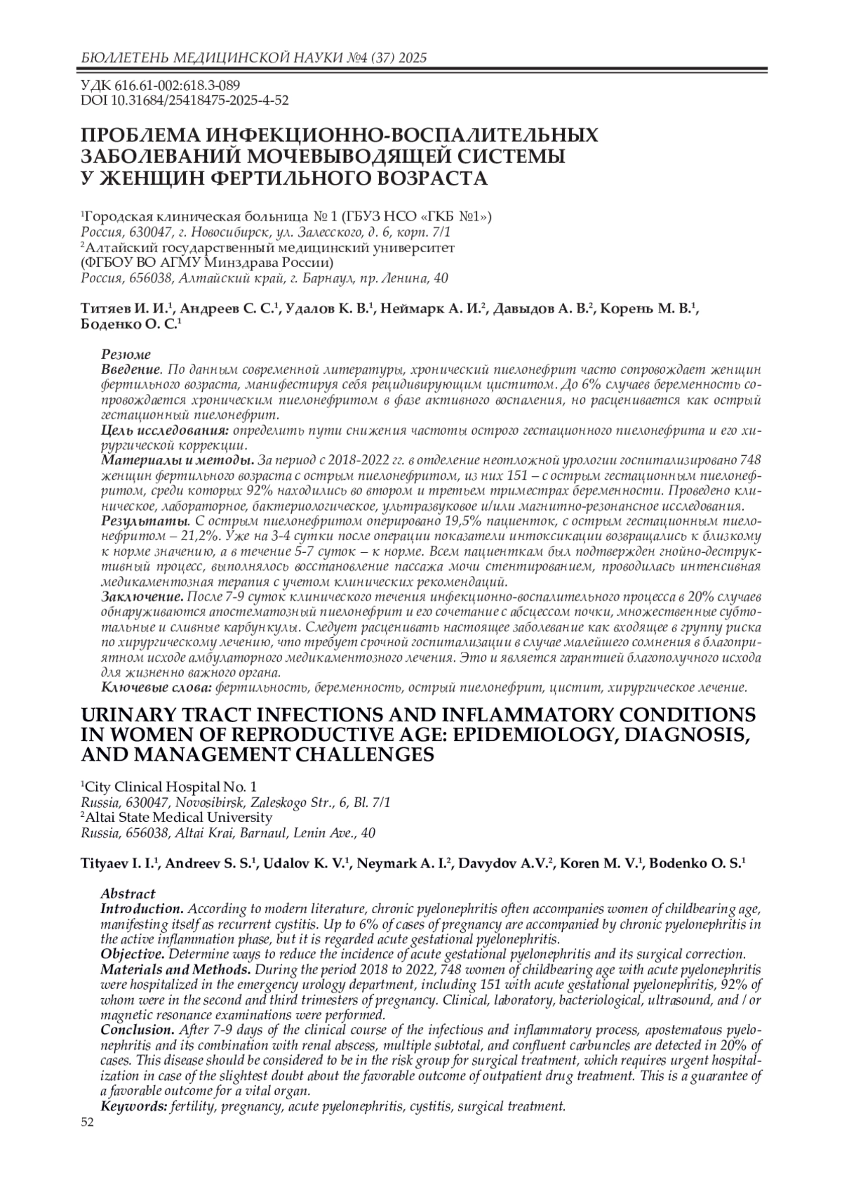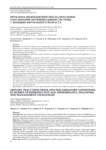 Tityaev I.I., Udalov K.V., Andreev S.S., Neymark A.I., Davydov A.V., Koren M.V., Russu V.V. Acute pyelonephritis associated with pregnancy. Bulletin of Medical Science. 2024; 4(36): 94-100. 10.31684/25418475-2024-4-94. (In Russ.). DOI: 10.31684/25418475-2024-4-94.InRuss