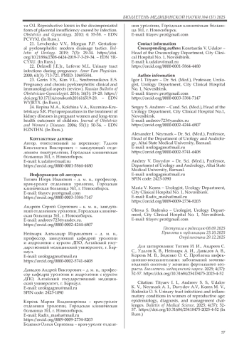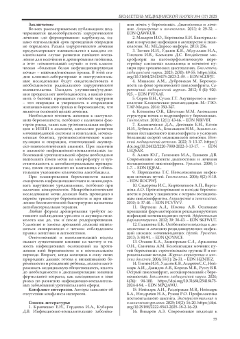 14. Титяев И.И., Удалов К.В., Андреев С.С., Неймарк А.И., Давыдов А.В., Корень М.В., Руссу В.В. Острый пиелонефрит, ассоциированный с беременностью. Бюллетень медицинской науки. 2024; 4(36): 94-100. https://doi.оrg/. DOI: 10.31684/25418475-2024-4-94