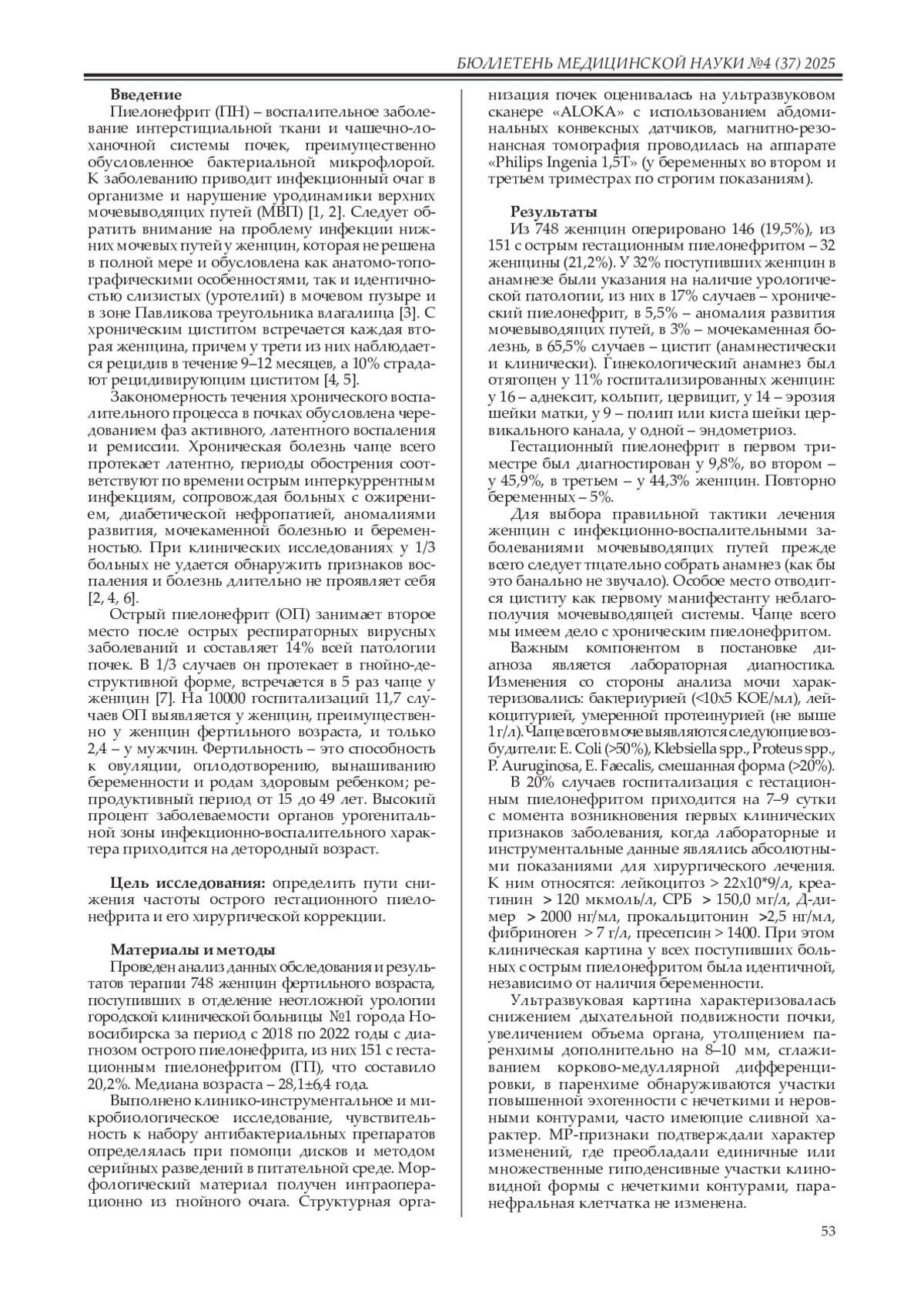 Цель исследования: определить пути снижения частоты острого гестационного пиелонефрита и его хирургической коррекции.