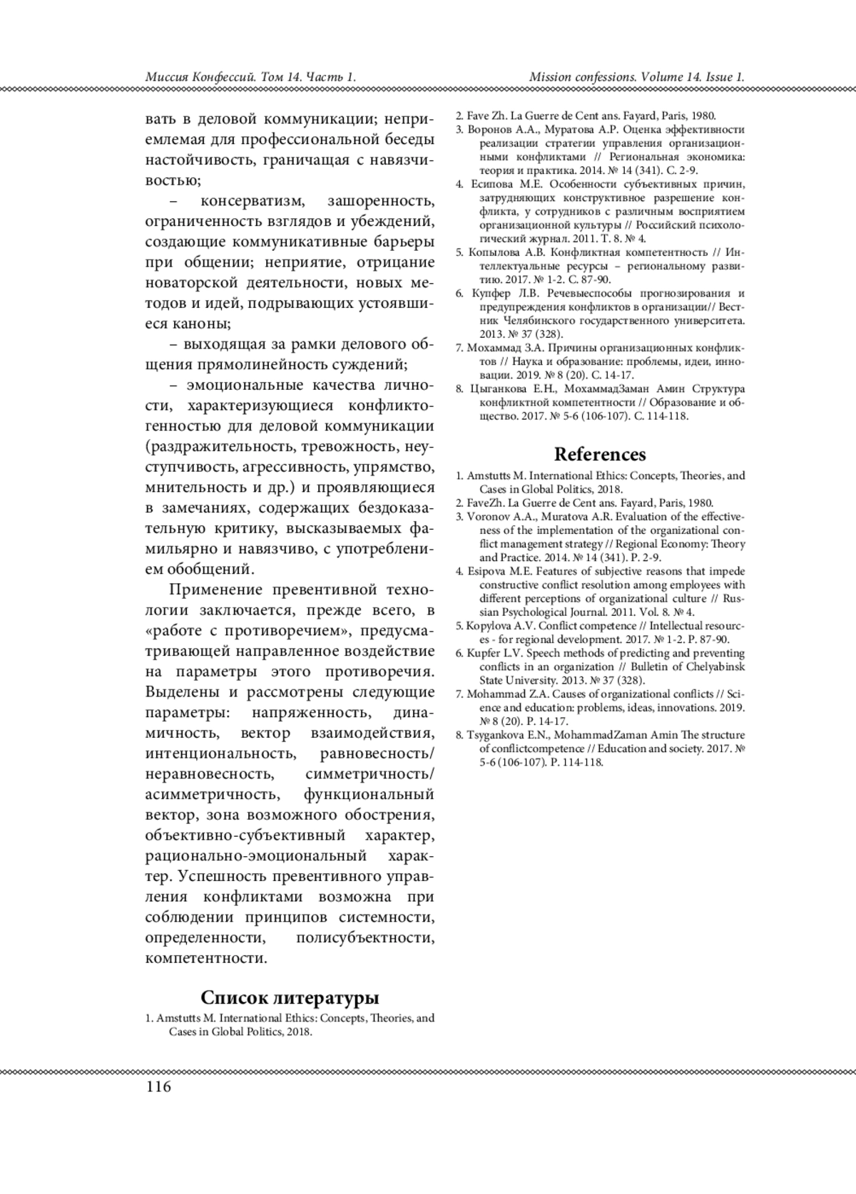 8. Цыганкова Е.Н., Мохаммад Заман Амин Структура конфликтной компетентности // Образование и общество. 2017. № 5-6 (106-107). С. 114-118.