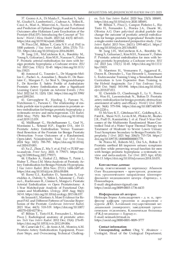 42. Müllhaupt G., Hechelhammer L., Graf N., Mordasini L., Schmid H.P., Engeler D.S., Abt D. Prostatic Artery Embolisation Versus Transurethral Resection of the Prostate for Benign Prostatic Obstruction: 5-year Outcomes of a Randomised, Open-label, Noninferiority Trial. Eur Urol Focus. 2024 Sep; 10(5): 788-795. DOI: 10.1016/j.euf.2024.03.001