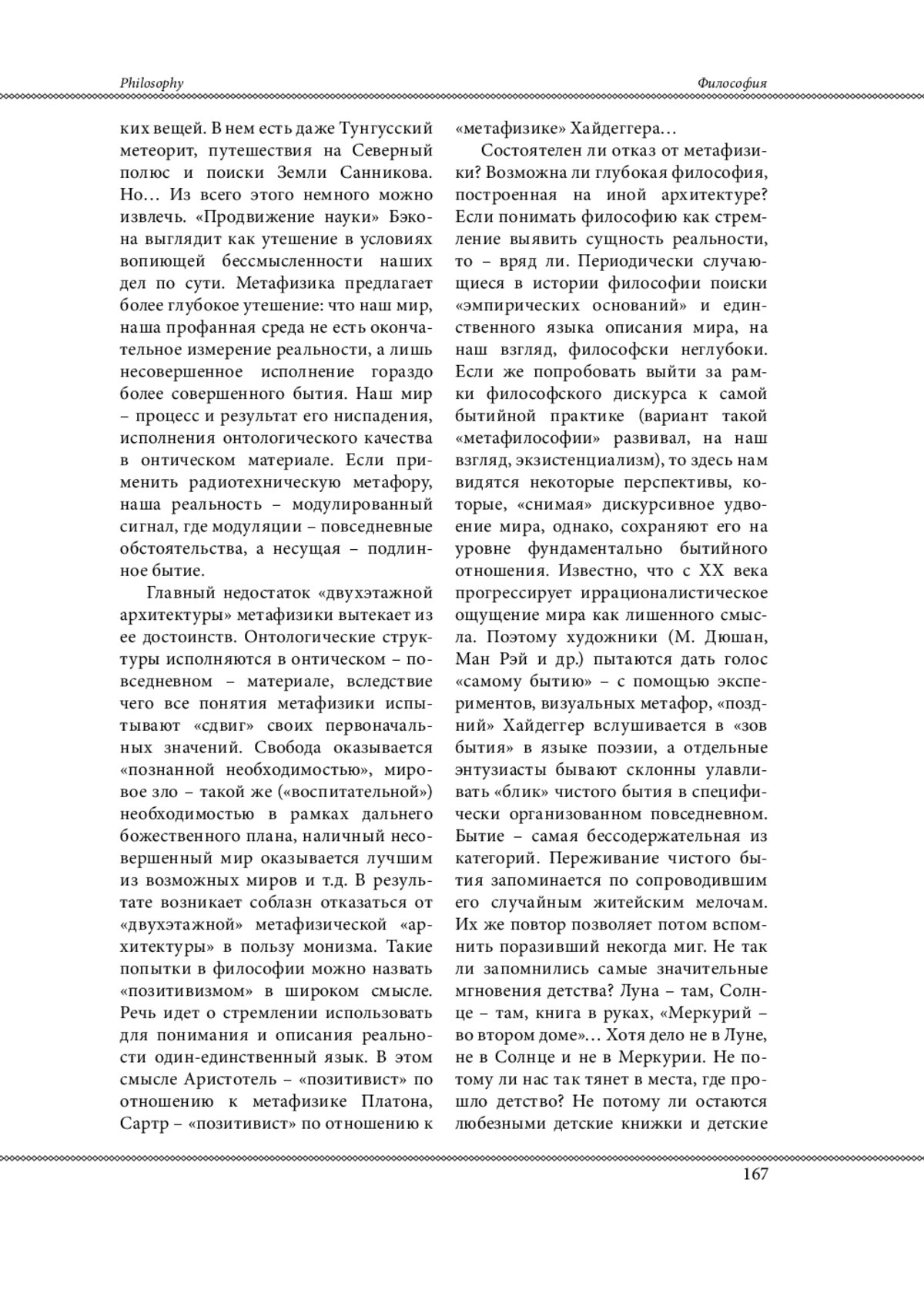 «Удвоение» мира с головой выдает себя в самом слове «метафизика» (греческое «мета…» означает «за…»), если отвлечься от банальной истории появления этого термина.