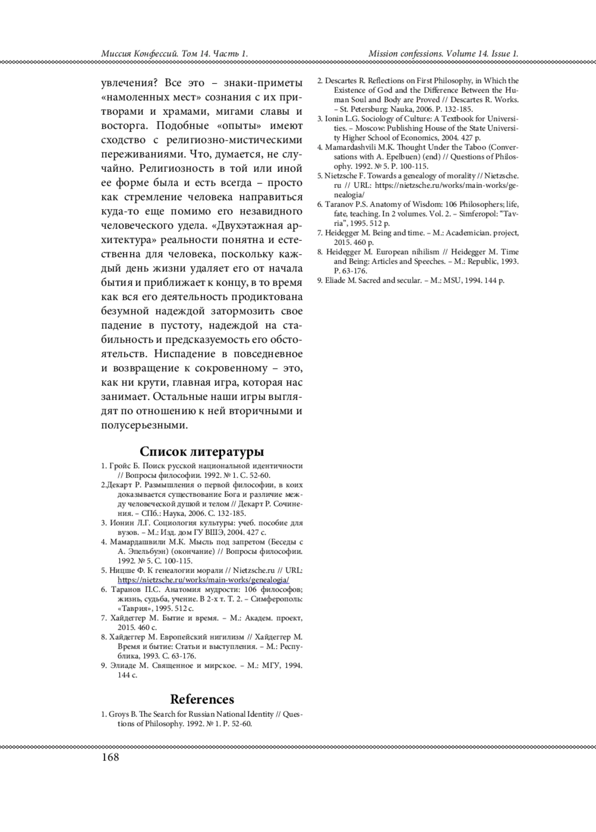 1. Гройс Б. Поиск русской национальной идентичности // Вопросы философии. 1992. № 1. С. 52-60.