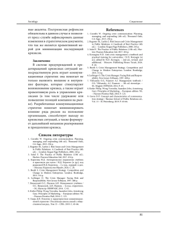 9. Гавра Д.П. Понятие и характеристики коммуникационной стратегии / Российская школа связей с общественностью ред., Том 15 - СПб.: 2019. С. 65-66.