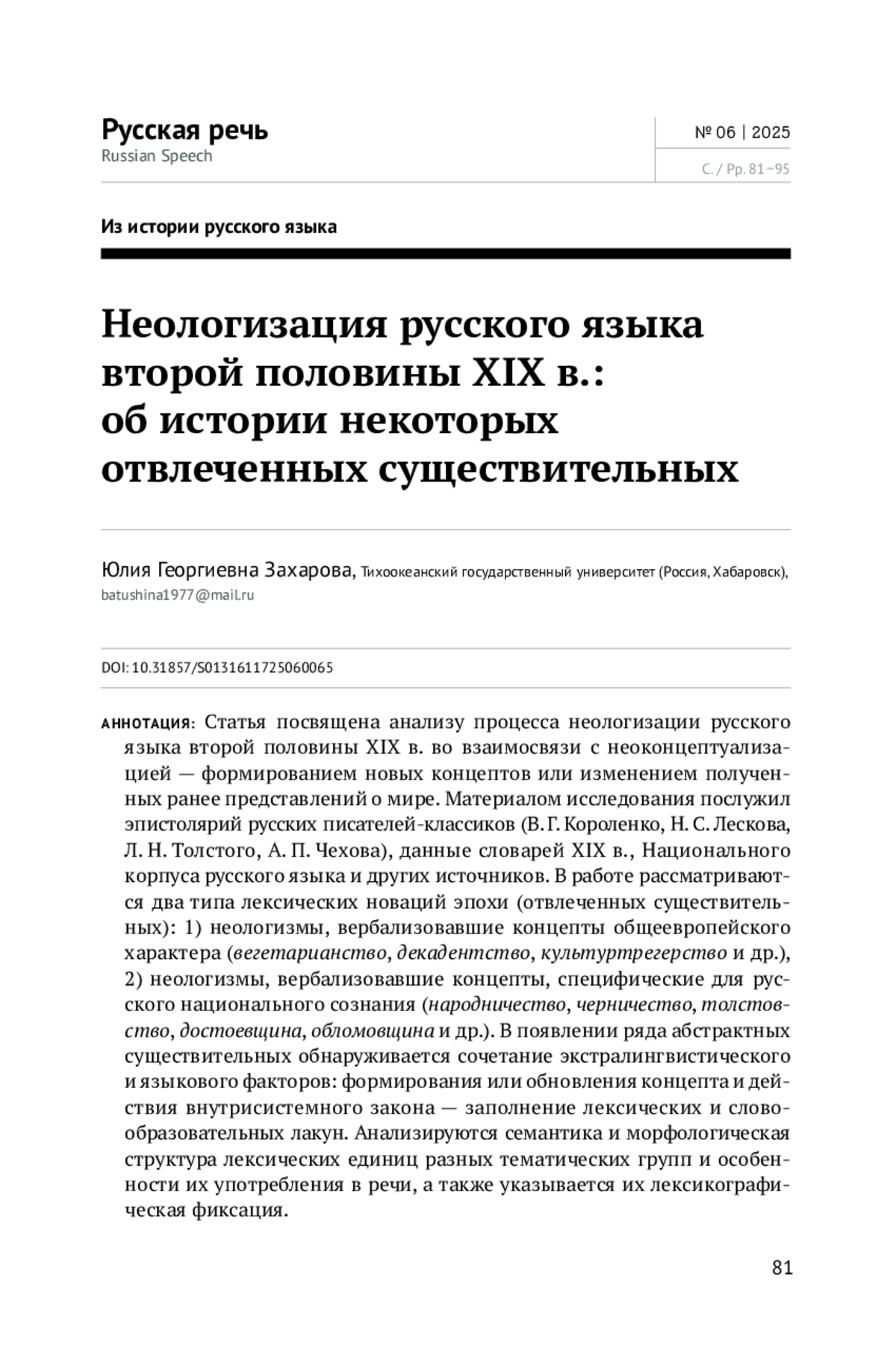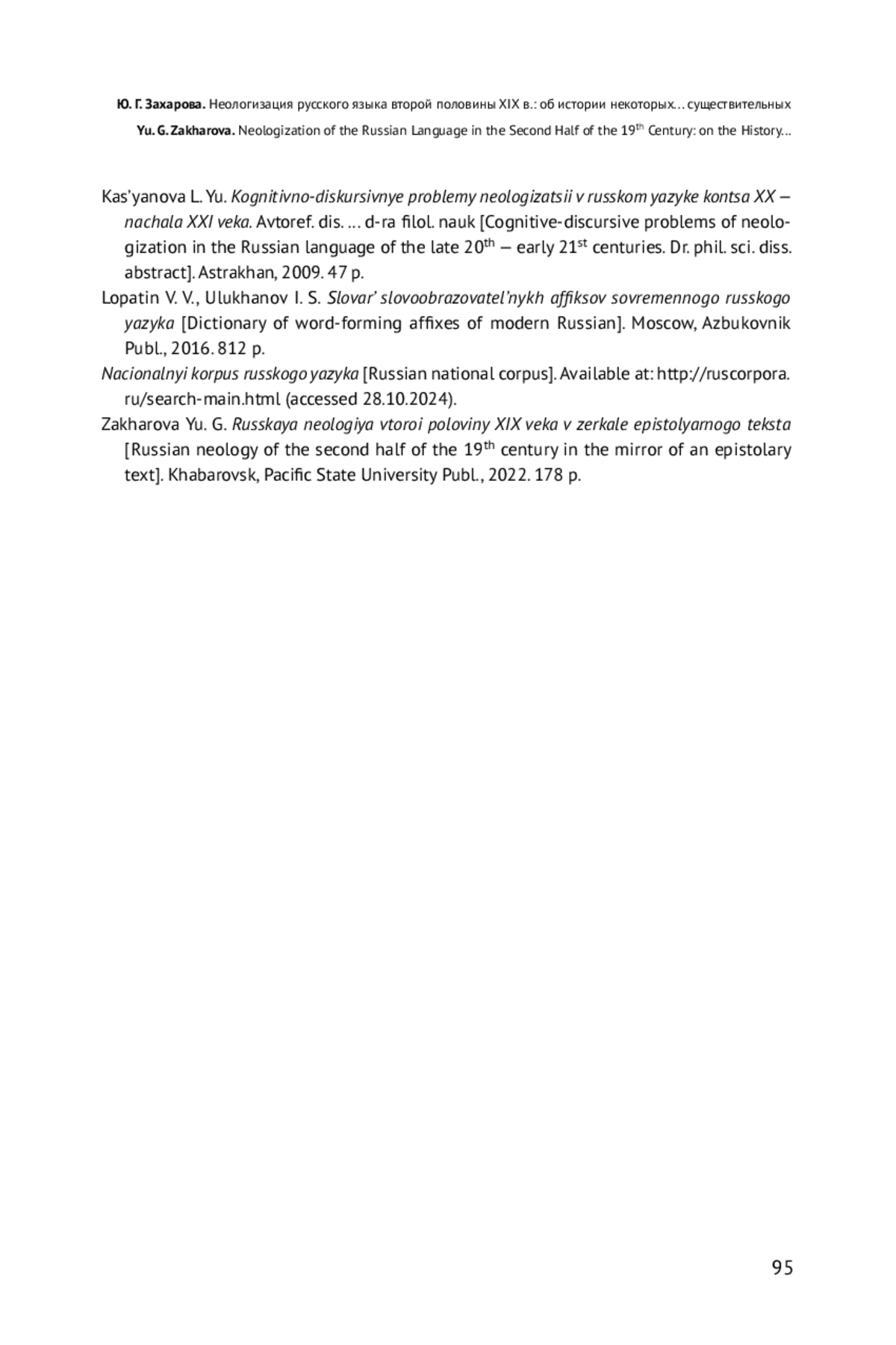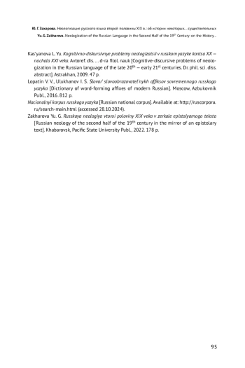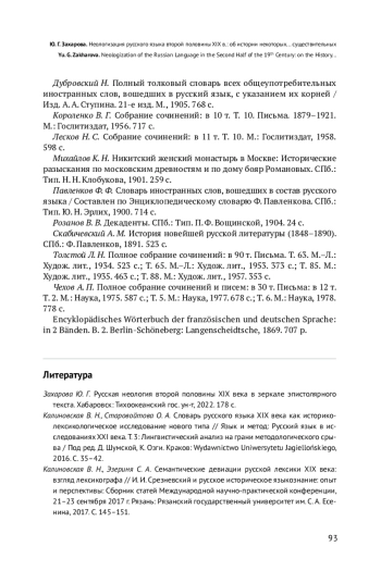 20. Захарова Ю. Г. Русская неология второй половины XIX века в зеркале эпистолярного текста. Хабаровск: Тихоокеанский гос. ун-т, 2022. 178 с. EDN: HHEHUW