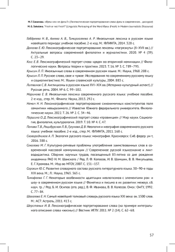 3. Габдреева Н. В., Агеева А. В., Тимиргалеева А. Р. Иноязычная лексика в русском языке новейшего периода: учебное пособие. 2-е изд. М.: ФЛИНТА, 2014. 328 с.