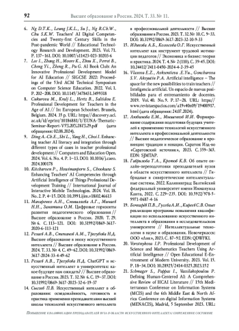 6. Ng D.T.K., Leung J.K.L., Su J., Ng R.Ch.W., Chu S.K.W. Teachers’ AI Digital Competencies and Twenty-first Century Skills in the Post-pandemic World // Educational Technology Research and Development. 2023. Vol. 71. P. 137-161. DOI: 10.1007/s11423-023-10203-6 EDN: WYJJJF