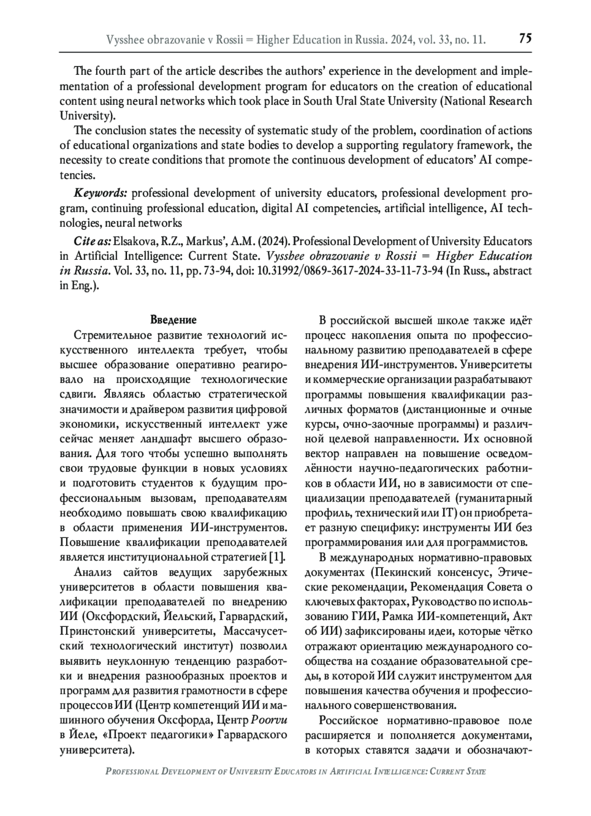 5. Simuț R., Simuț C., Bădulescu D., Bădulescu A. Artificial Intelligence and the Modelling of Teachers’ Competencies // Amfiteatru Economic. 2024. Vol. 26. No. 65. P. 181-200. DOI: 10.24818/EA/2024/65/181 EDN: ZHCACU