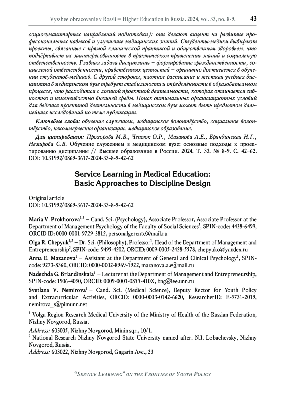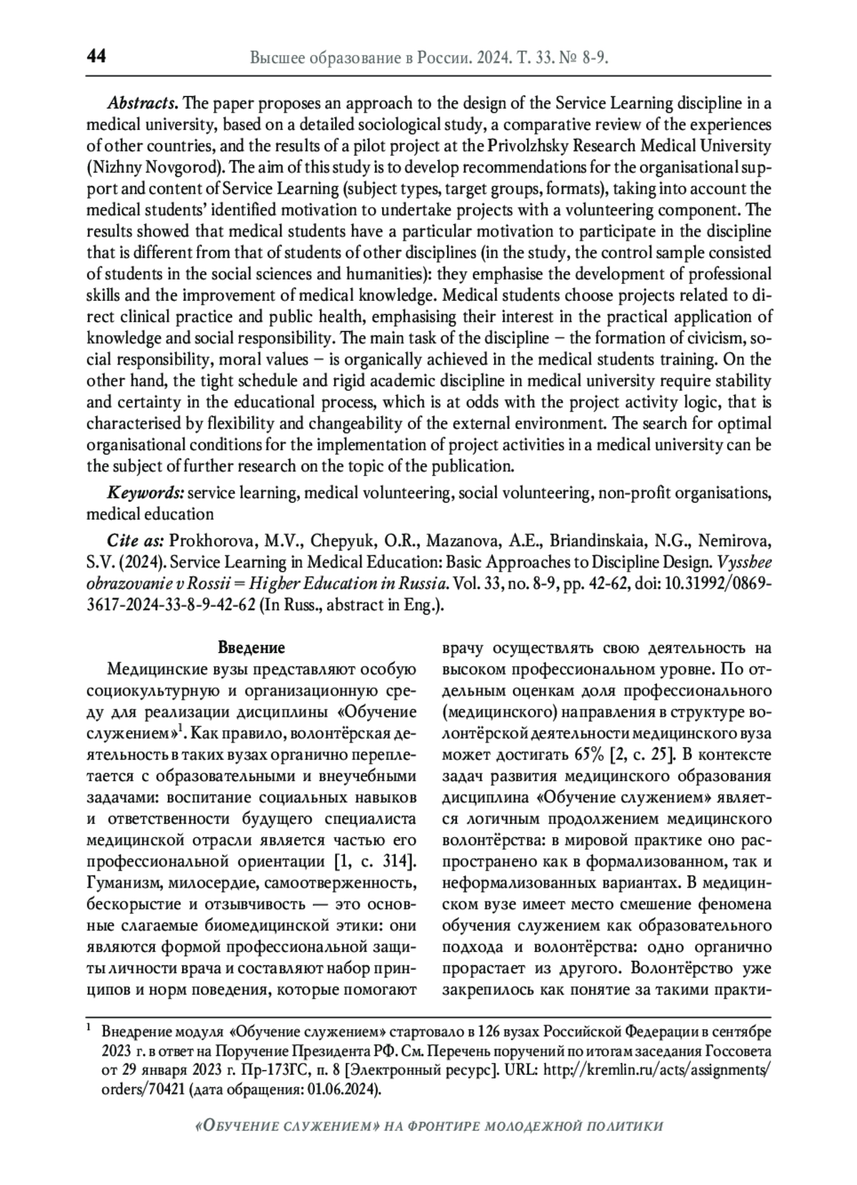4. Никольский В.С. Обучение служением в России: становление предметного поля // Высшее образование в России. 2023. Т. 32. № 12. С. 9-28. DOI: 10.31992/0869-3617-2023-32-12-9-28 EDN: PWWCVL