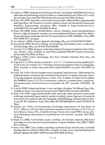 23. Розин В.М. Специфика и формирование естественных, технических и гуманитарных наук. Красноярск: Изд-во Краснояр. ун-та, 1989. 200 с. URL: https://search.rsl.ru/ru/record/01001471273 (дата обращения: 28.05.2024).