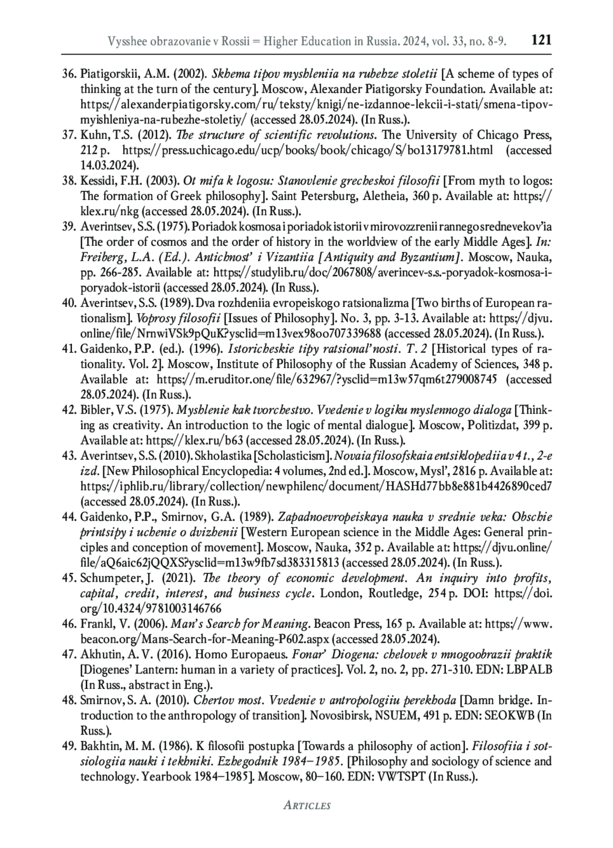 43. Аверинцев С.С. Схоластика // Новая философская энциклопедия: в 4 т. 2-е изд., испр. и доп. М.: Мысль, 2010. С. 683-696. EDN: UNXBKW
