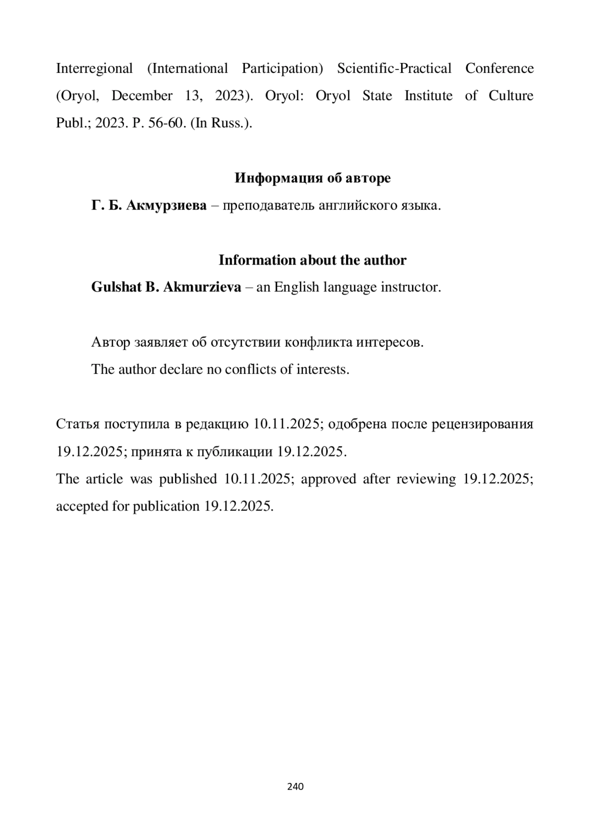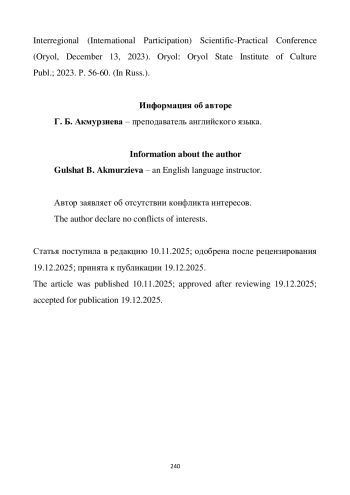 2. Zharkynbekova S., Shakhputova Z., Galiyeva B., Absadyk A. Value Priorities of Student Youth in the Multi-Ethnic Space of Kazakhstan and Their Influence on Intercultural Communications // Journalism and Media. 2023. Vol. 6 (1). URL: https://www.mdpi.com/2673-5172/6/1/32.