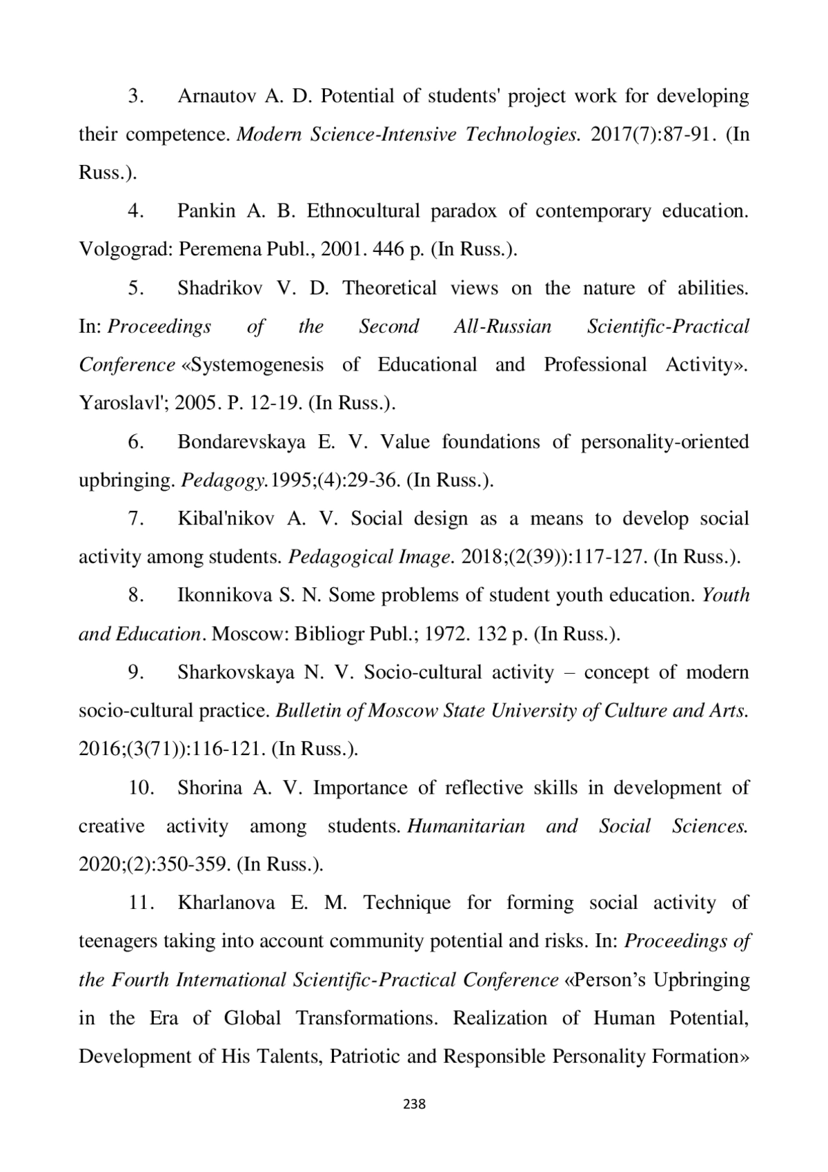 10. Шорина А. В. Значение рефлексивных умений в развитии творческой активности студентов // Гуманитарные и социальные науки. 2020. № 2. С. 350-359. EDN: GYCFVF