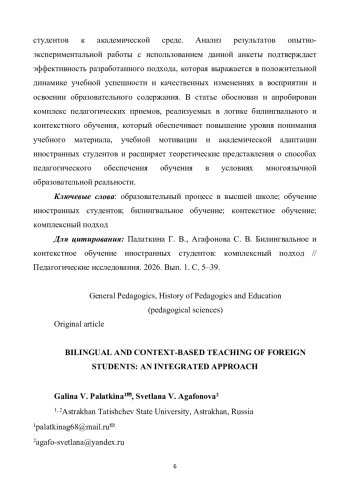 8. Смирнова З. М. Билингвальное обучение иностранных студентов. Преподавание физики и математики иностранным студентам в медицинских вузах // Методология и технология непрерывного профессионального образования. 2024. Т. 1, № 17. С. 76-85.