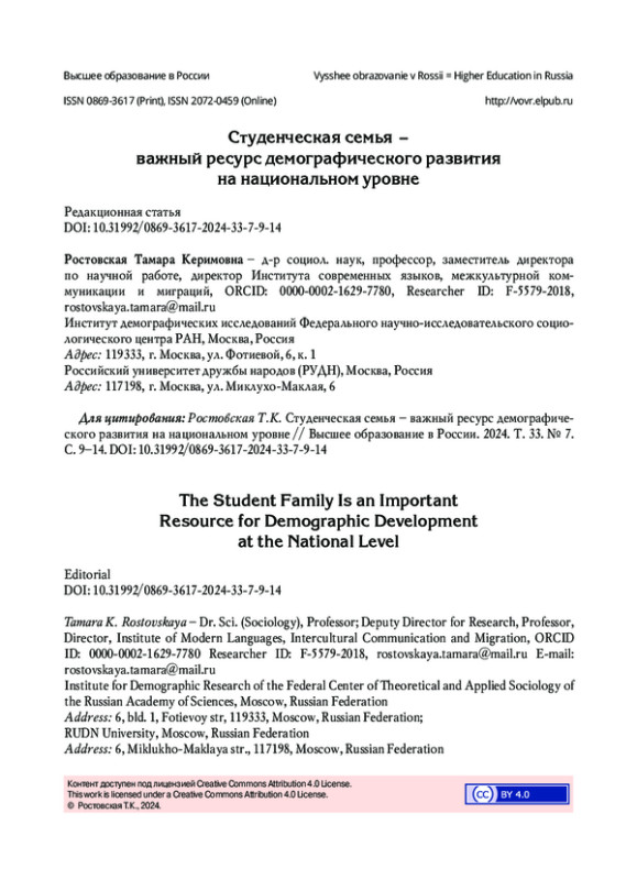 7. Институциональные основы становления студенческой семьи как ресурса демографического развития России // Вестник Южно-Российского государственного технического университета (НПИ). Серия: Социально-экономические науки. 2022. Т. 15. № 1. С. 169-179. URL: https://www.isras.ru/index.php?page_id=1198&id=10732 (дата обращения: 10.06.2024). EDN: XVZFAX