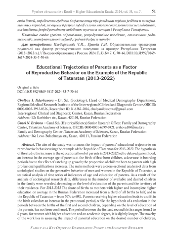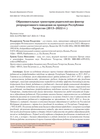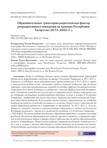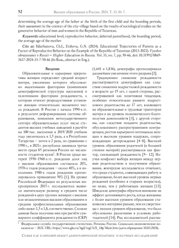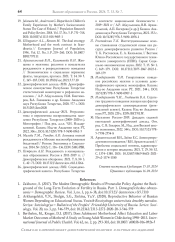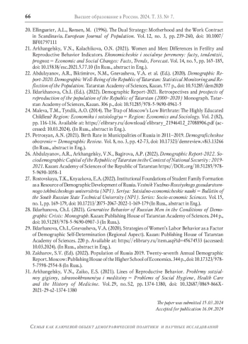2. Архангельский В.Н. Шульгин С.Г., Зинькина Ю.В. Репродуктивное поведение российских женщин в зависимости от образовательного статуса // Вестник Российского университета дружбы народов. Серия: Социология. 2020. Т. 20. № 3. С. 546-559. DOI: 10.22363/2313-2272-2020-20-3-546-559 EDN: HTKWUD