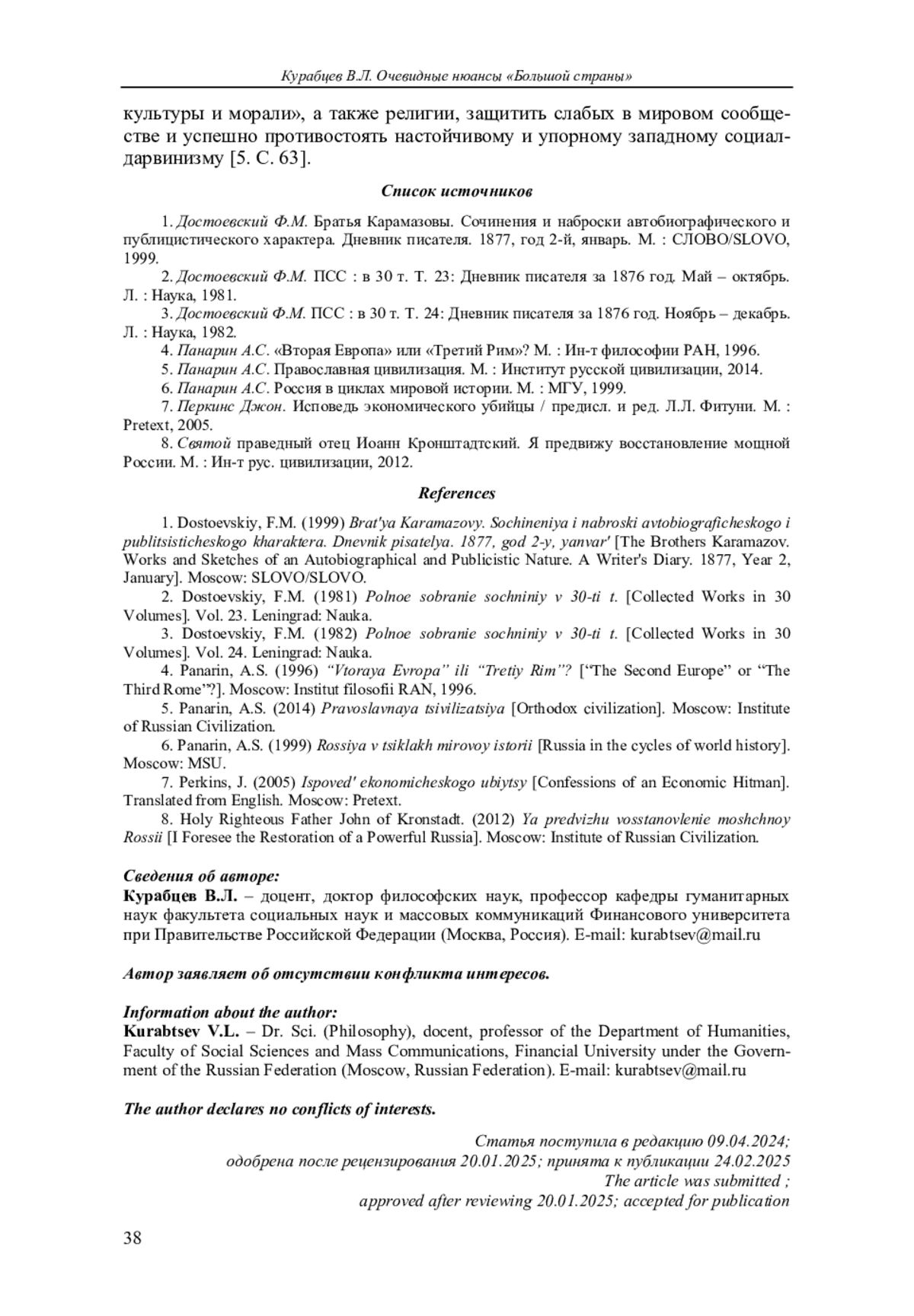 5. Панарин А.С. Православная цивилизация. М.: Институт русской цивилизации, 2014.