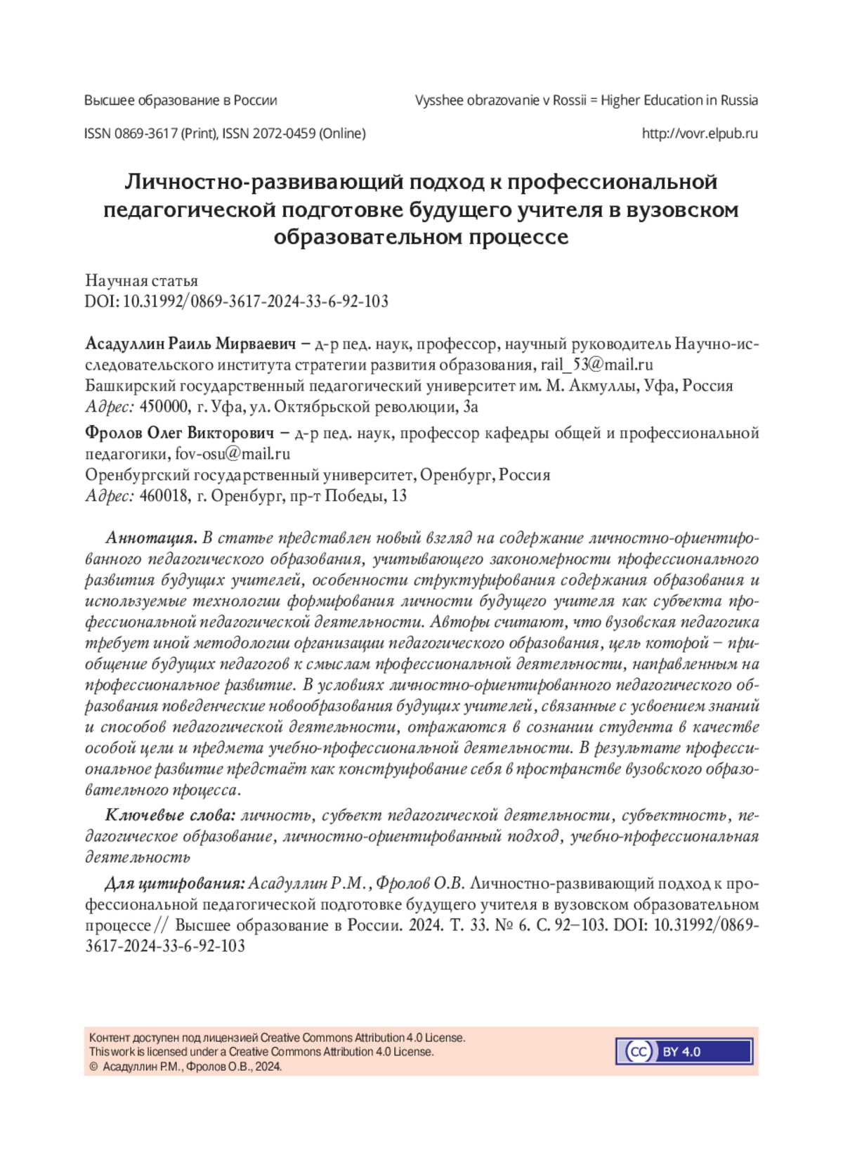 В статье представлен новый взгляд на содержание личностно-ориентированного педагогического образования, учитывающего закономерности профессионального развития будущих учителей, особенности структурирования содержания образования и используемые технологии формирования личности будущего учителя как субъекта профессиональной педагогической деятельности. Авторы считают, что вузовская педагогика требует иной методологии организации педагогического образования, цель которой - приобщение будущих педагогов к смыслам профессиональной деятельности, направленным на профессиональное развитие. В условиях личностно-ориентированного педагогического образования поведенческие новообразования будущих учителей, связанные с усвоением знаний и способов педагогической деятельности, отражаются в сознании студента в качестве особой цели и предмета учебно-профессиональной деятельности. В результате профессиональное развитие предстаёт как конструирование себя в пространстве вузовского образовательного процесса.