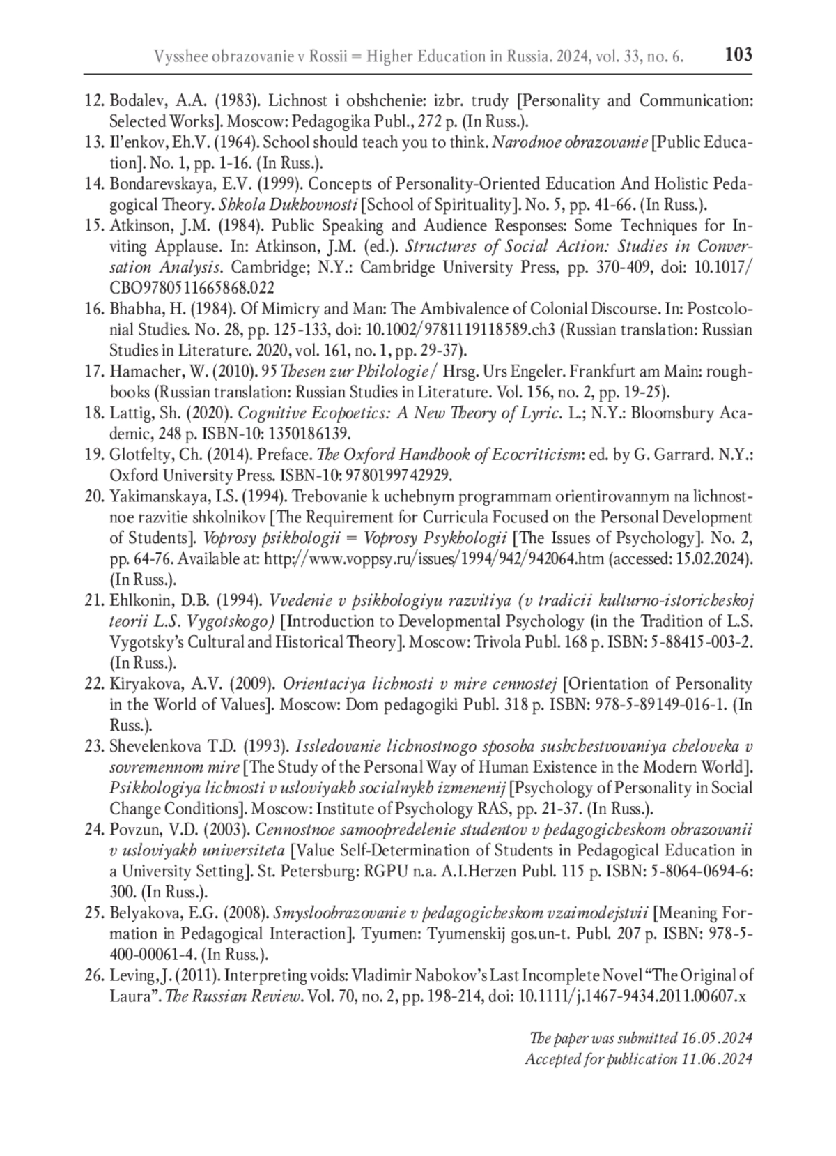 6. Рубинштейн С.Л. Принцип творческой самодеятельности (к философским особенностям современной педагогики) // Вопросы психологии. 1986. № 4. С. 101-108. EDN: YSTAPR