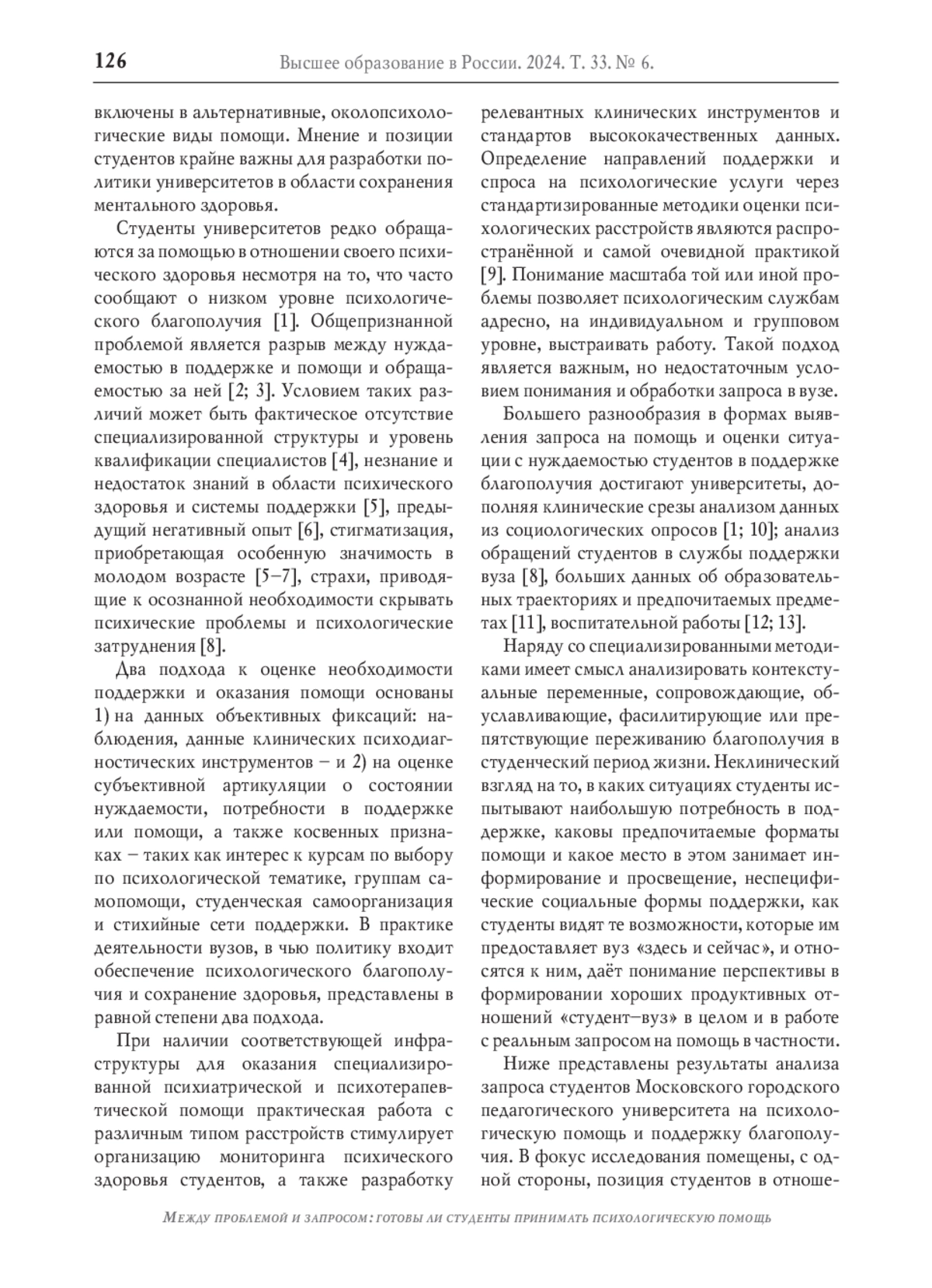 19. Горбунова Е.В., Крылова И.Е. Психологические службы в российских вузах: что имеем и куда идём? // Высшее образование в России. 2023. № 11 (32). C. 95-115. DOI: 10.31992/0869-3617-2023-32-11-95-115 EDN: FGSSOM