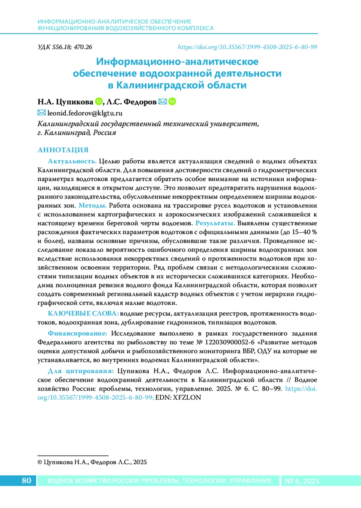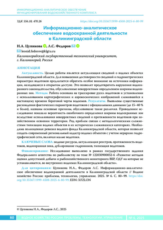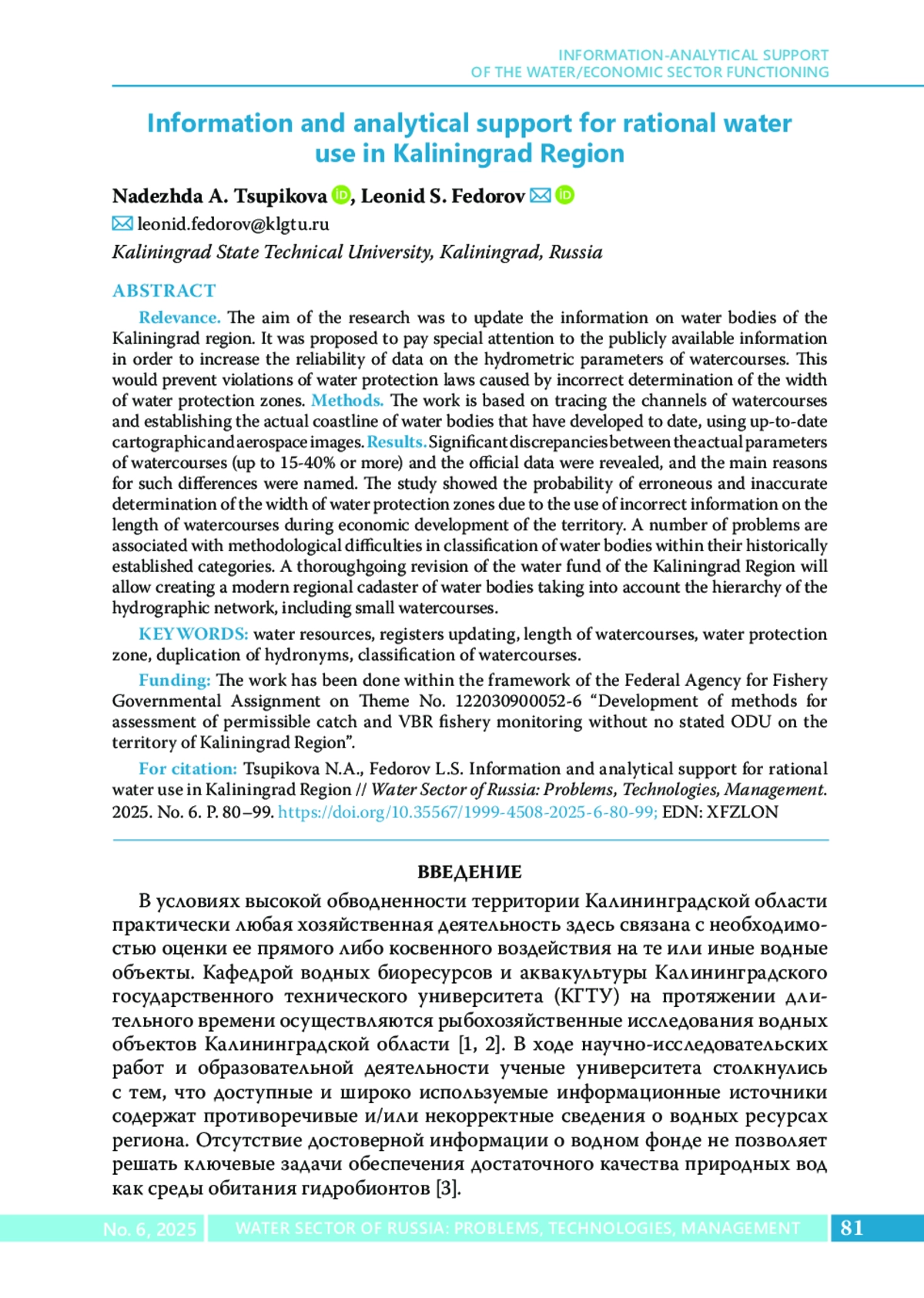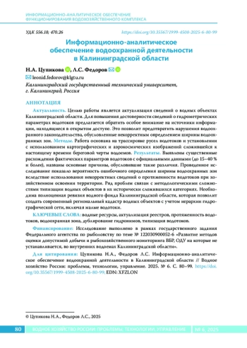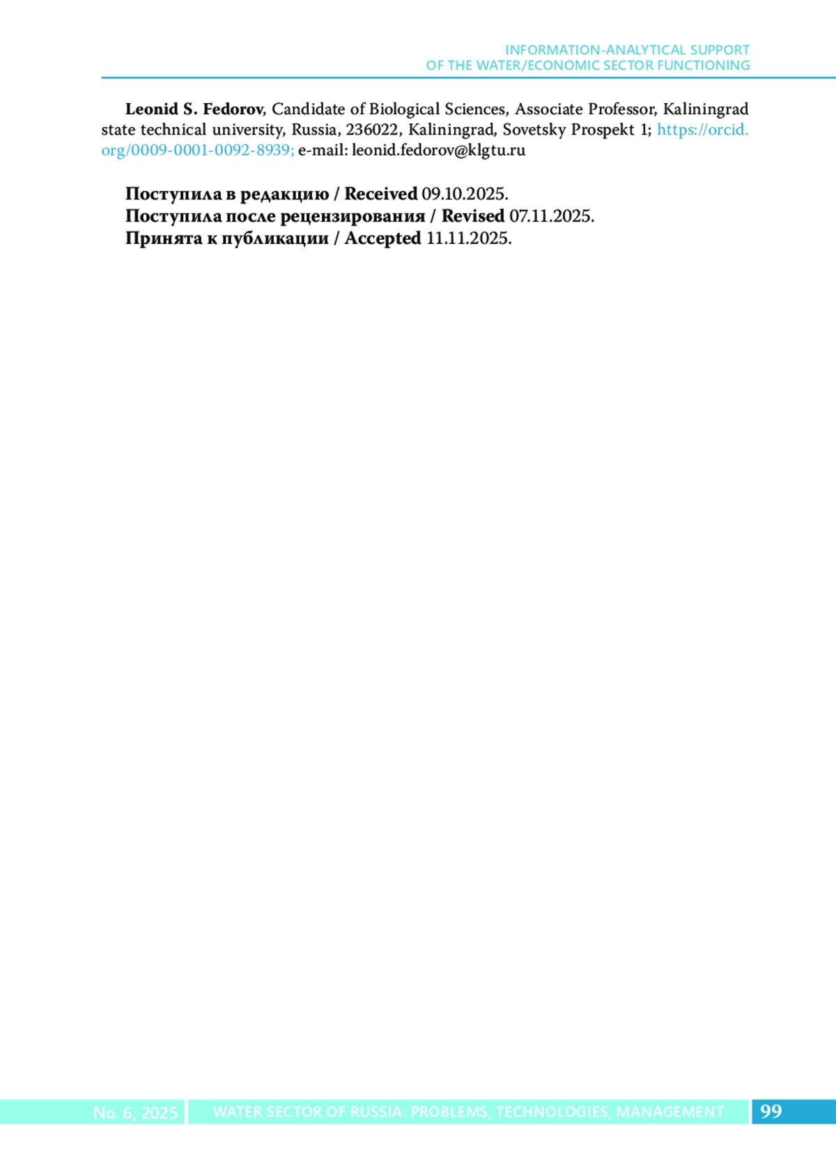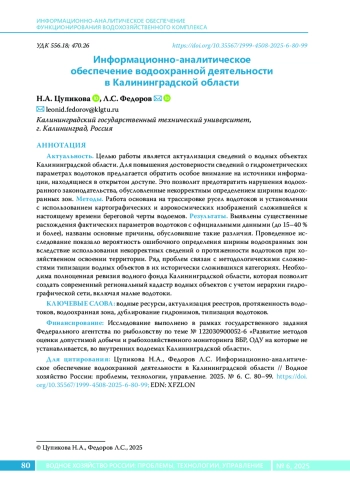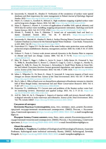 10. Janczewska N., Matysik M., Absalon D. Verification of the consistency of surface water spatial databases and their importance for water management in Poland // Journal of Hydrology: Regional Studies. 2023. DOI: 10.1016/j.ejrh.2023.101486