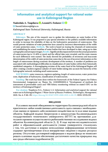 9. Жерелина И.В., Жоров B.A., Постнова И.С., Поломошнова Н.В., Брютова О.В. Опыт и проблемы применения на практике сведений, включенных в государственный водный реестр // Водное хозяйство России: проблемы, технологии, управление. 2024. № 5. С. 5-20. DOI: 10.35567/19994508-2024-5-5-20