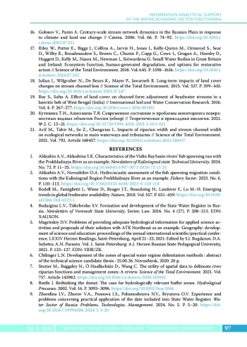 21. Arif М., Tahir М., Jie Z., Changxiao L. Impacts of riparian width and stream channel width on ecological networks in main waterways and tributaries // Science of the Total Environment. 2021. Vol. 792. Article 148457.