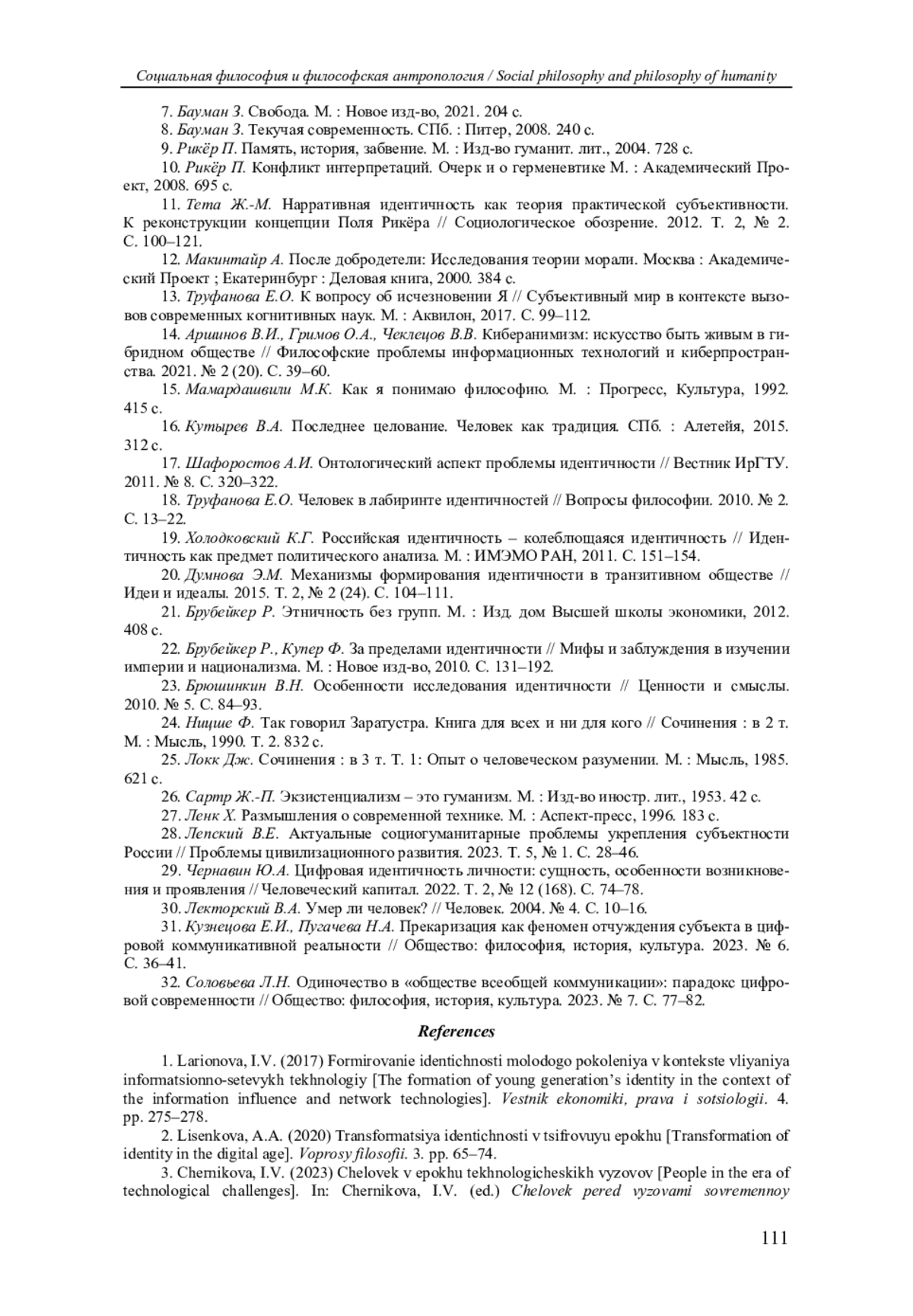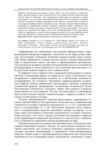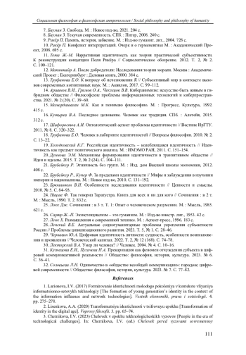 2. Лисенкова А.А. Трансформация идентичности в цифровую эпоху // Вопросы философии. 2020. № 3. С. 65-74. EDN: DPAULB