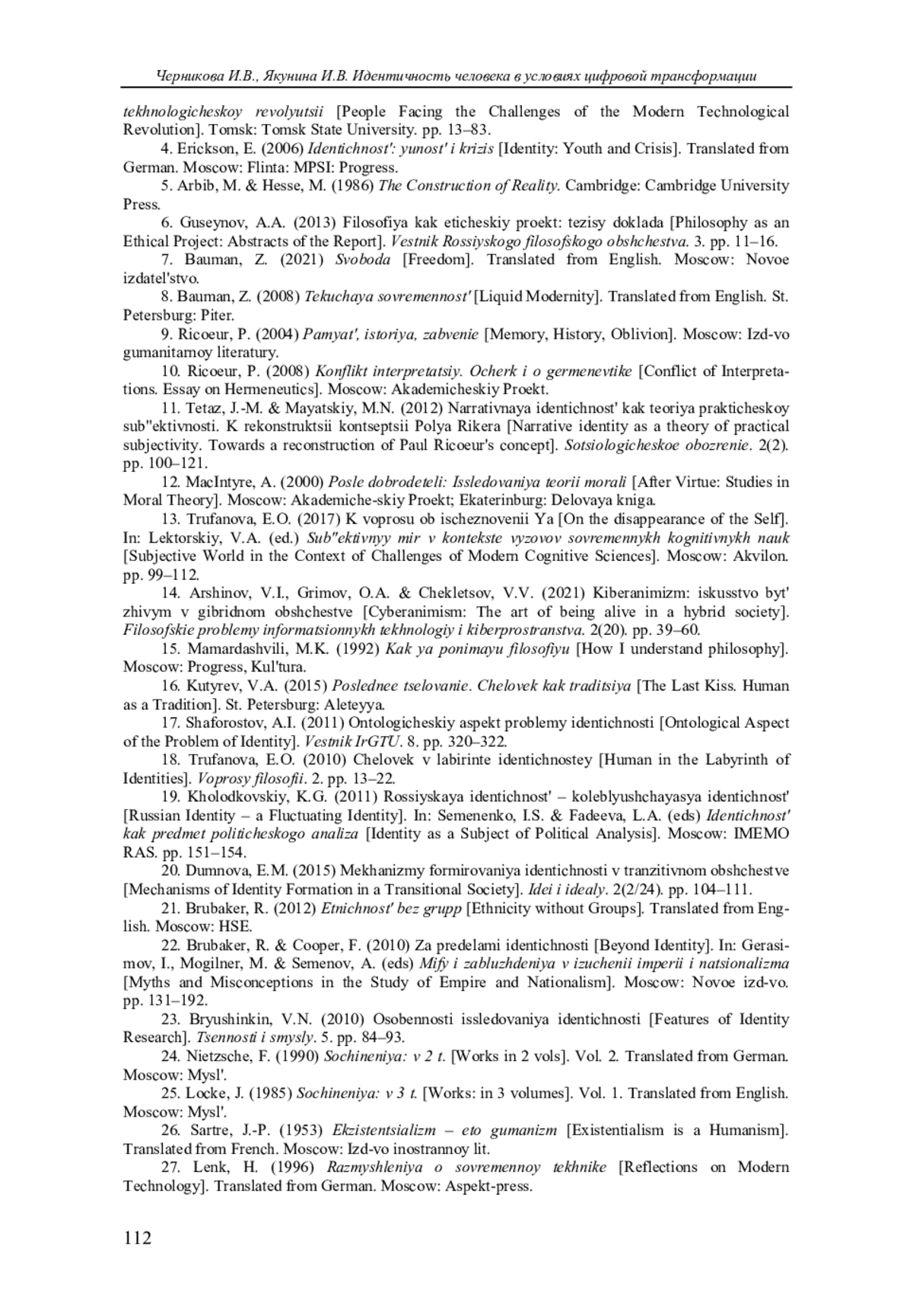 3. Черникова И.В. Человек в эпоху технологических вызовов // Человек перед вызовами современной технологической революции. Томск: Изд-во Том. гос. ун-та. 2023. С.13-83.