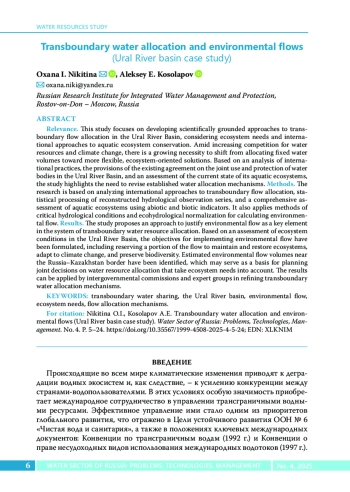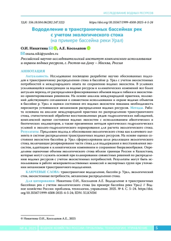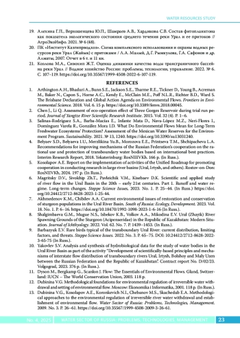 6. Магрицкий Д.В., Сивохип Ж.Т., Павлейчик В.М., Кисебаев Д.К. Научно-прикладное изучение стока рек в бассейне Урала в XX в. - начале XXI в. Часть 1. Сток и водный режим. Многолетние изменения // Вопросы степеведения, 2023. № 1. C. 25-44. DOI: 10.24412/2712-8628-2023-1-25-44