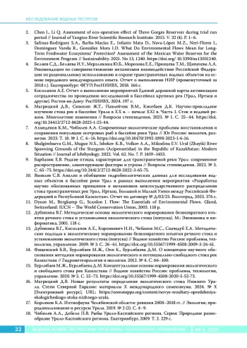 7. Ахмеденов К.М., Чибилев А.А. Современные экологические проблемы восстановления и сохранения популяции осетровых рыб в бассейне реки Урал // Юг России: экология, развитие. 2023. Т. 18. № 1. C. 6-16. DOI: 10.18470/1992-1098-2023-1-6-16
