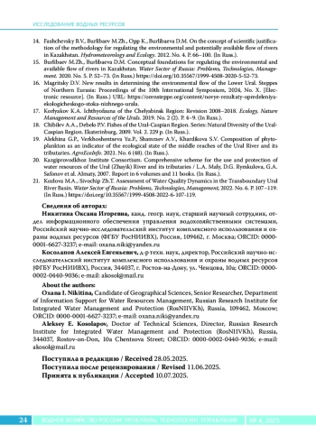 16. Магрицкий Д.В. Новые результаты определения экологического стока Нижнего Урала. Степи Северной Евразии: материалы X международного симпозиума. 2024. № X [Электронный ресурс]. URL: https://orensteppe.org/content/novye-rezultaty-opredeleniya-ekologicheskogo-stoka-nizhnego-urala.
