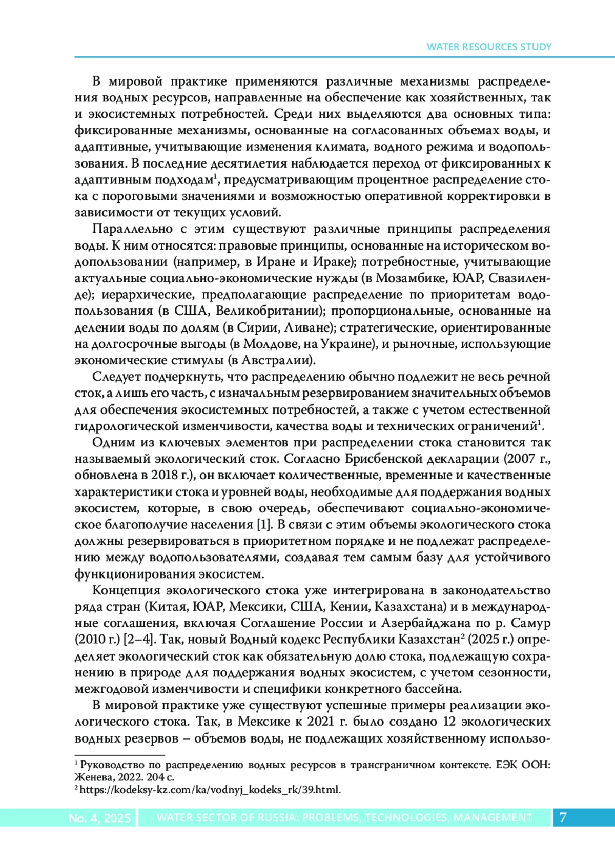 15. Бурлибаев М.Ж., Бурлибаева Д.М. Концептуальные основы нормирования экологического и свободного стока рек Казахстана // Водное хозяйство России: проблемы, технологии, управление. 2020. № 5. C. 52-73. DOI: 10.35567/1999-4508-2020-5-52-73