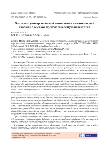 32. Ren K., Li J. Academic Freedom and University Autonomy: A Higher Education Policy Perspective // Higher Education Policy. 2013. No 26. P. 507-522. DOI: 10.1057/hep.2013.31 EDN: SRVLXJ