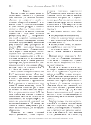 2. Давыдова Д., Гильванов Г.Р., Кукушкина Я.В., Романова И.Ю. Иммерсивные технологии в высшем образовании // Известия Петербургского университета путей сообщения. СПб.: ПГУПС, 2023. Т. 20. Вып. 1. С. 120-132. DOI: 10.20295/1815-588X-2023-1-120-132 EDN: BZFKOL