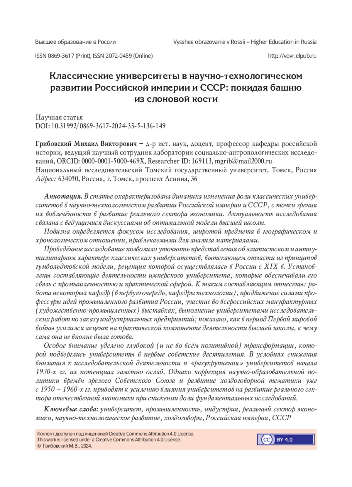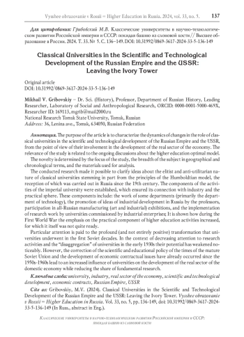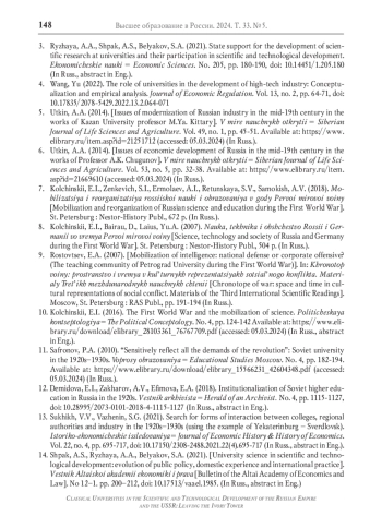 13. Сухих В.В., Важенин С.Г. Поиск форм взаимодействия втузов, региональных властей и промышленности в 1920-1930-х гг. (на примере Екатеринбурга - Свердловска) // Историко-экономические исследования. 2021. Т. 22. № 4. С. 695-717. DOI: 10.17150/2308-2488.2021.22(4).695-717 EDN: OYNJRB