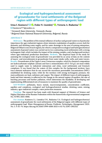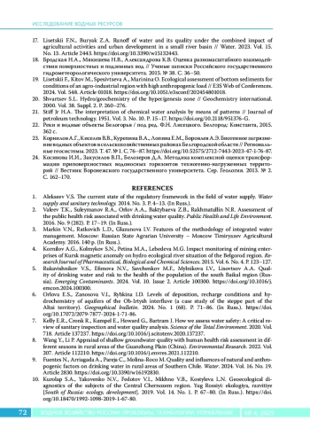 5. Rukavishnikov V.S., Efimova N.V., Savchenkov M.F., Mylnikova I.V., Lisovtsov A.A. Quality of drinking water and risk to the health of the population of the south Baikal region (Russia) // Emerging Contaminants. 2024. Vol. 10. Issue 2. Article 100300. DOI: 10.1016/j.emcon.2024.100300
