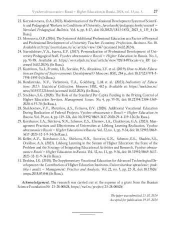 22. Коряковцева О.А. Модернизация системы профессионального развития научно-педагогических работников в условиях вуза // Ярославский педагогический вестник. 2023. № 6. С. 8-17. DOI: 10.20323/1813-145X_2023_6_135_8 EDN: CWUNWJ