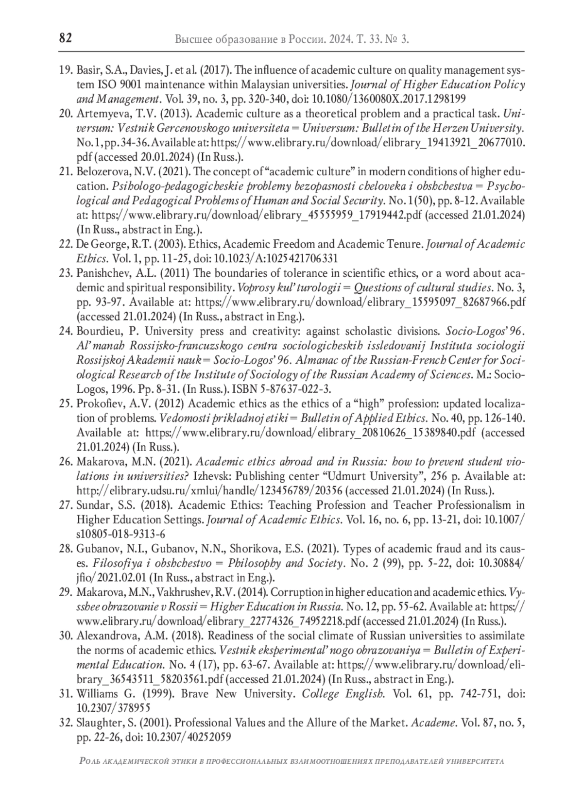 32. Slaughter S. Professional Values and the Allure of the Market // Academe. 2001. Vol. 87. No. 5. Р. 22-26. DOI: 10.2307/40252059