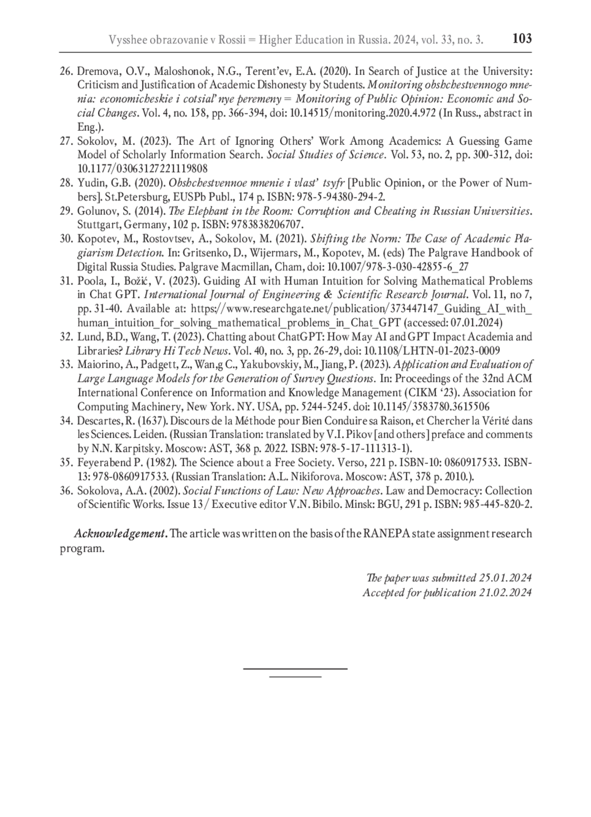 27. Sokolov M. The art of ignoring others’ work among academics: A guessing game model of scholarly information search // Social Studies of Science. 2023. Vol. 53. No. 2. P. 300-312. DOI: 10.1177/03063127221119808 EDN: LAZXRA