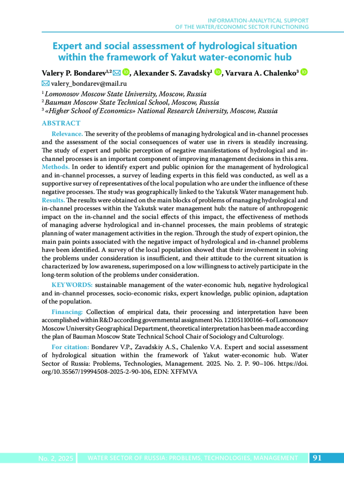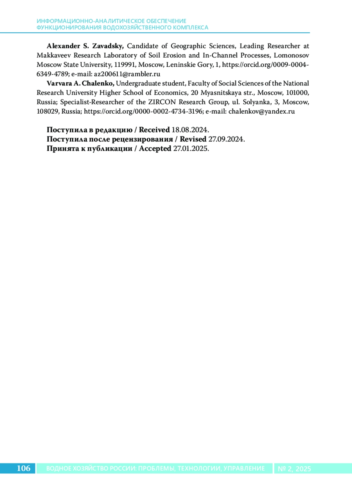 1. Bondarev V.P. Social consequences of floods: case study of five emergencies in different global drainage basins // Geography, Environment, Sustainability. 2022. Vol. 15. No. 4. P. 188-195. DOI: 10.24057/2071-9388-2022-102