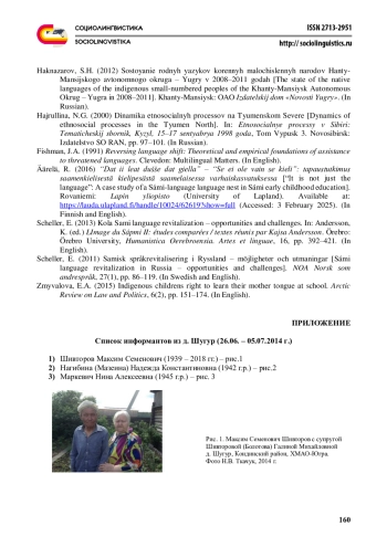 17. Хакназаров С.Х. (2012) Состояние родных языков коренных малочисленных народов Ханты-Мансийского автономного округа, Югры в 2008-2011 годах. Ханты-Мансийск, ОАО Издательский дом “Новости Югры”. 202 с. EDN: JMNSCL