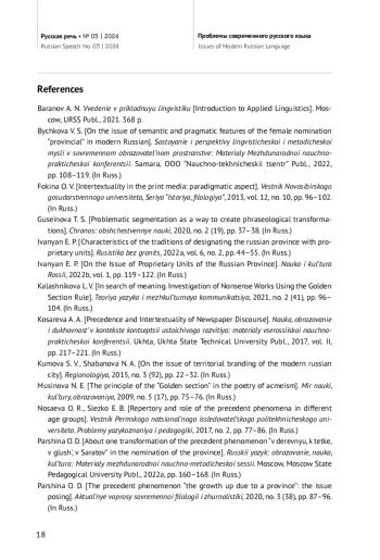 5. Иванян Е. П. Характеристика традиций обозначения русской провинции проприальными единицами // Русистика без границ. 2022б. Т. 6. № 2. С. 44-55. EDN: KDSKFG