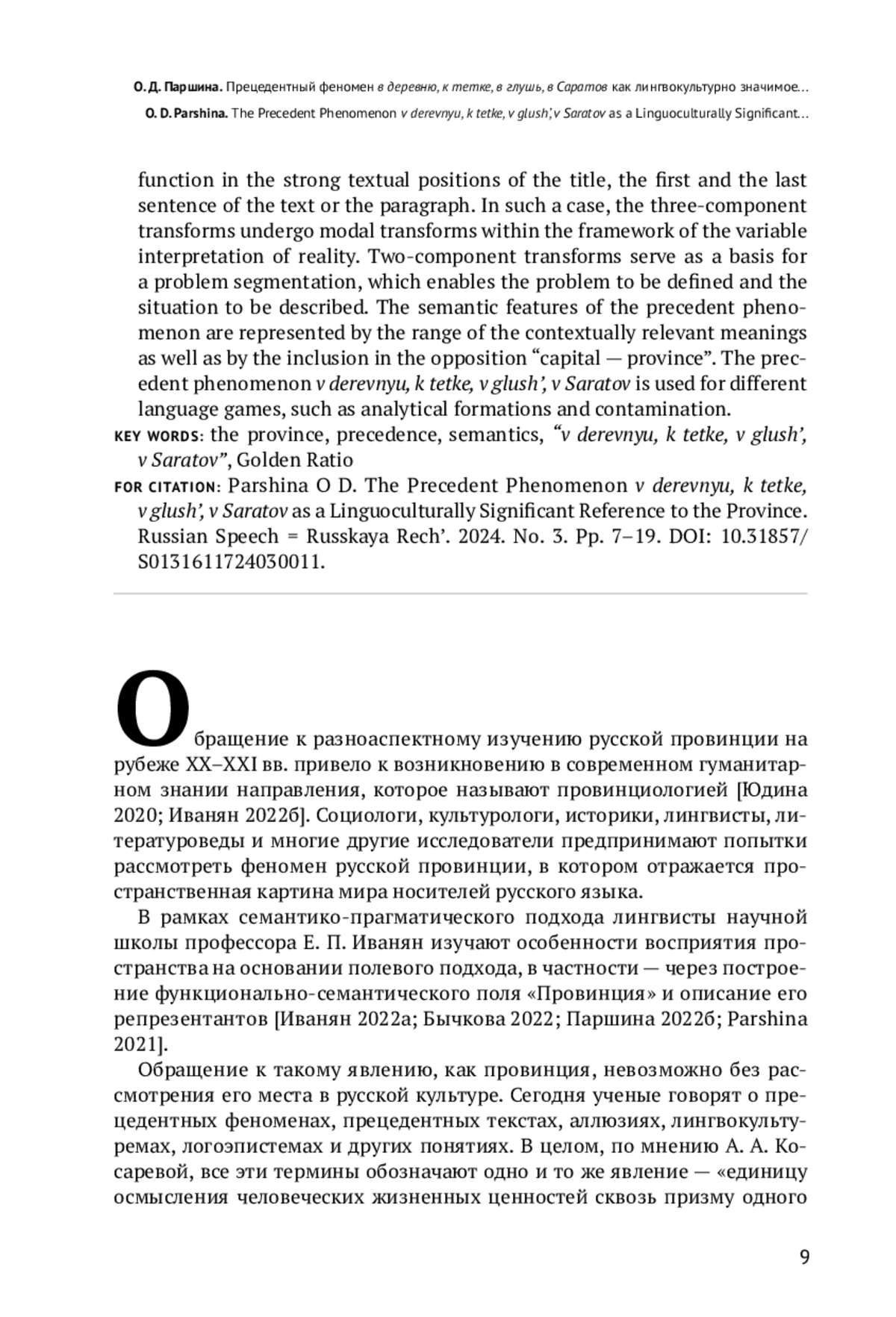 Parshina O. D. [About one transformation of the precedent phenomenon “v derevnyu, k tetke, v glush’, v Saratov” in the nomination of the province]. Russkii yazyk: obrazovanie, nauka, kul’tura: Materialy mezhdunarodnoi nauchno-metodicheskoi sessii. Moscow, Moscow State Pedagogical University Publ., 2022a, pp. 160-168. (In Russ.).