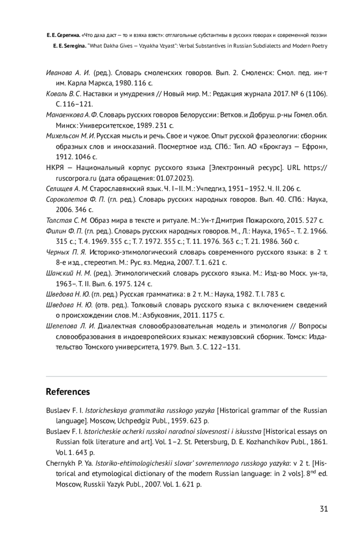 17. Шелепова Л. И. Диалектная словообразовательная модель и этимология // Вопросы словоо бразования в индоевропейских языках: межвузовский сборник. Томск: Издательство Томского университета, 1979. Вып. 3. С. 122-131.