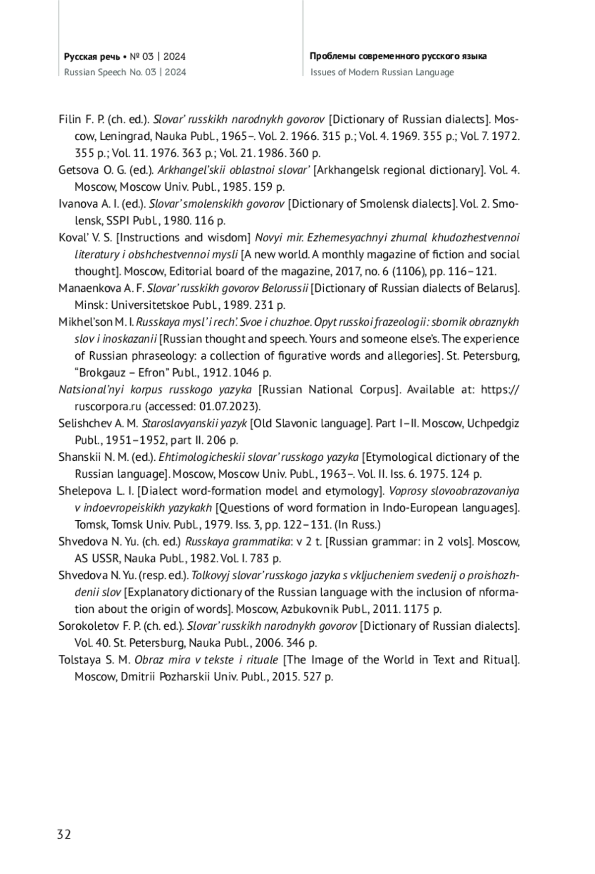 10. Сороколетов Ф. П. (гл. ред.). Словарь русских народных говоров. Вып. 40. СПб.: Наука, 2006. 346 с.